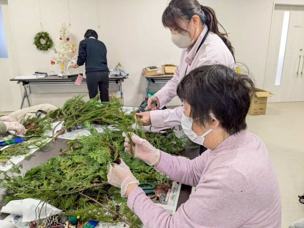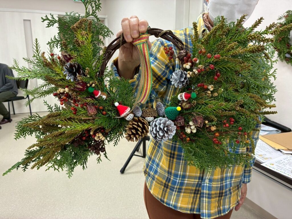 11月28日(金)にパークレジデンスの研修室で毎年大人気のクリスマスリース作りを行いました。