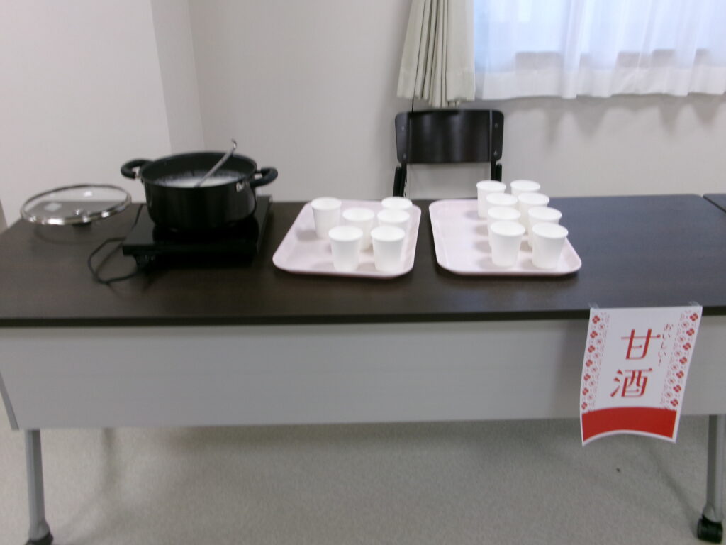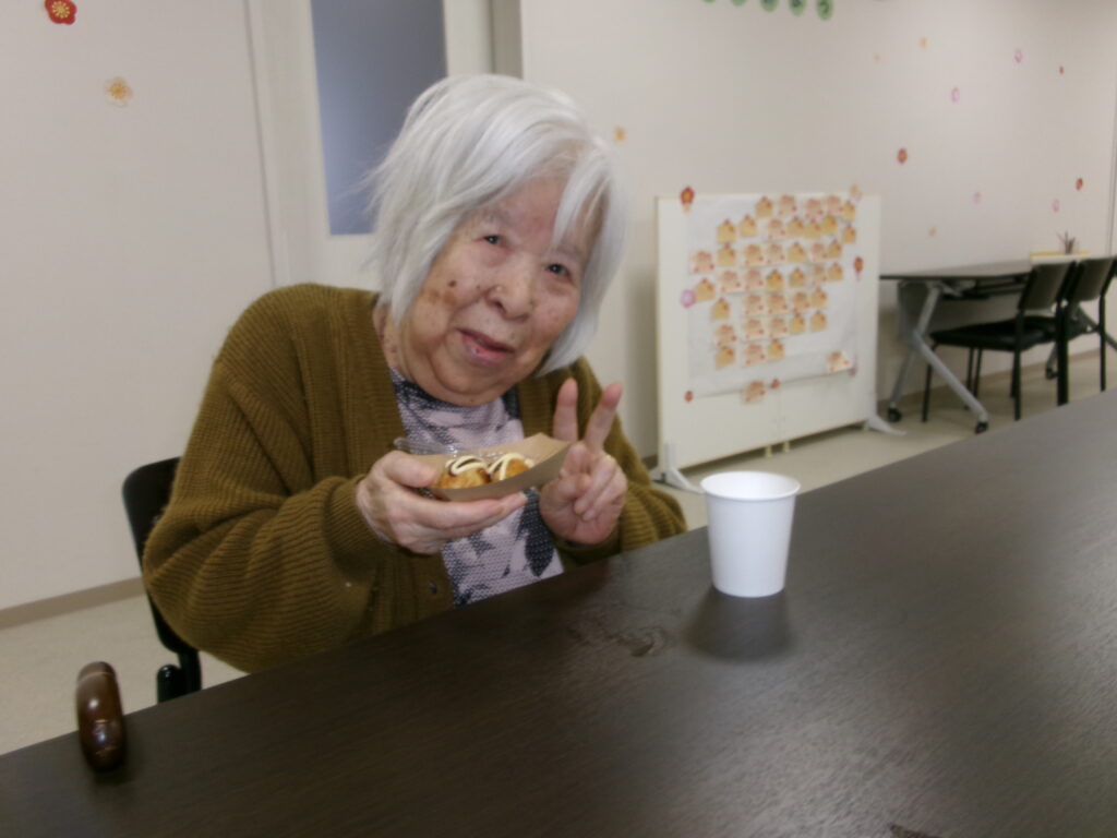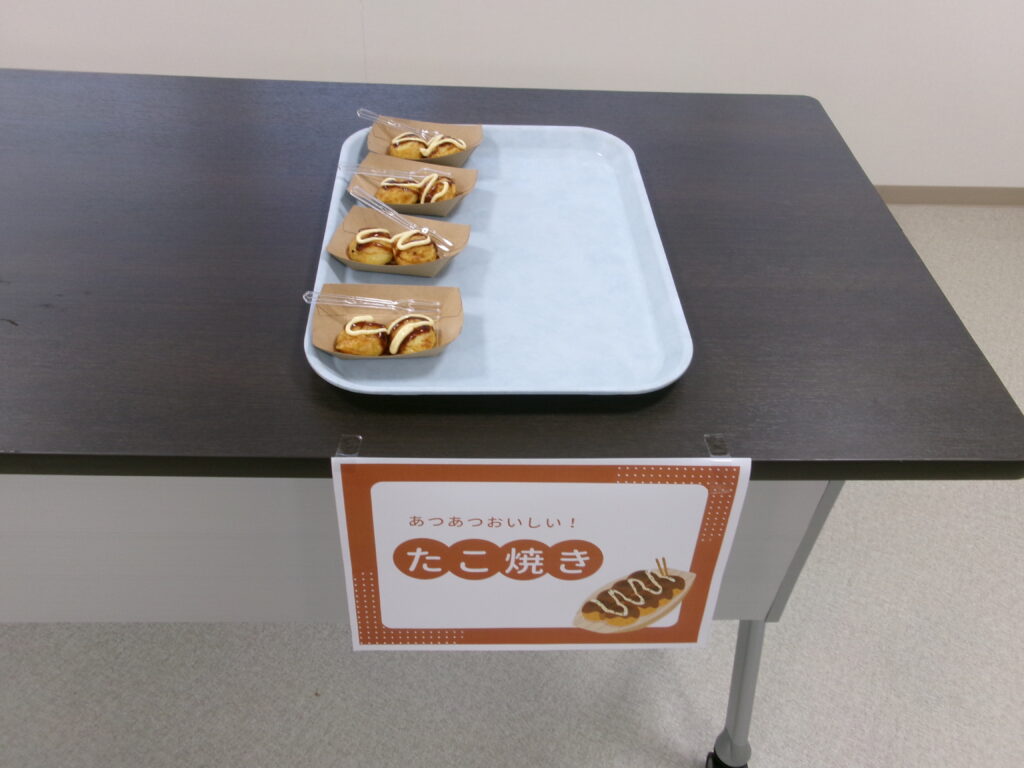 参拝後、栄養士が準備した「甘酒」と「たこ焼き」を食べて、おみくじを引きました♬