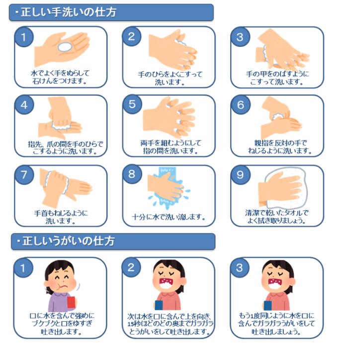 感染症対策の基本的なものとして、手洗い・うがいが一番大切になってきます。