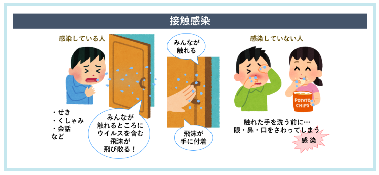 インフルエンザは『接触感染』と『飛沫感染』で拡がっていきます。